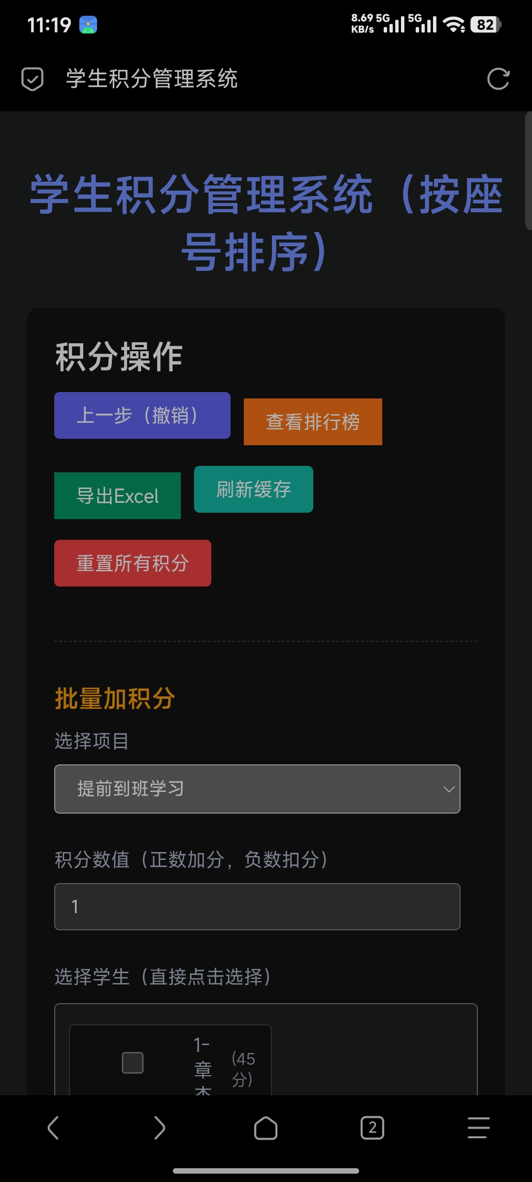 然后在10月份还帮语文老师写了一个积分统计的网站,我一般都是能找平替从不自己写这次实在没找到合适的平替了
